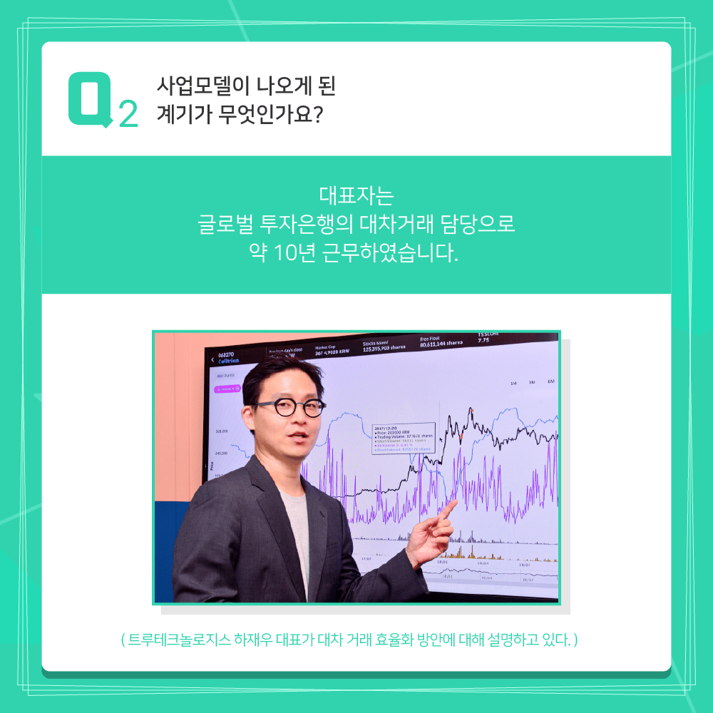 트루테크놀로지스는 금융기관 고객들에게 대차거래 및 공매도에 대한 종합적 정보를 제공하고 거래를 효율적으로