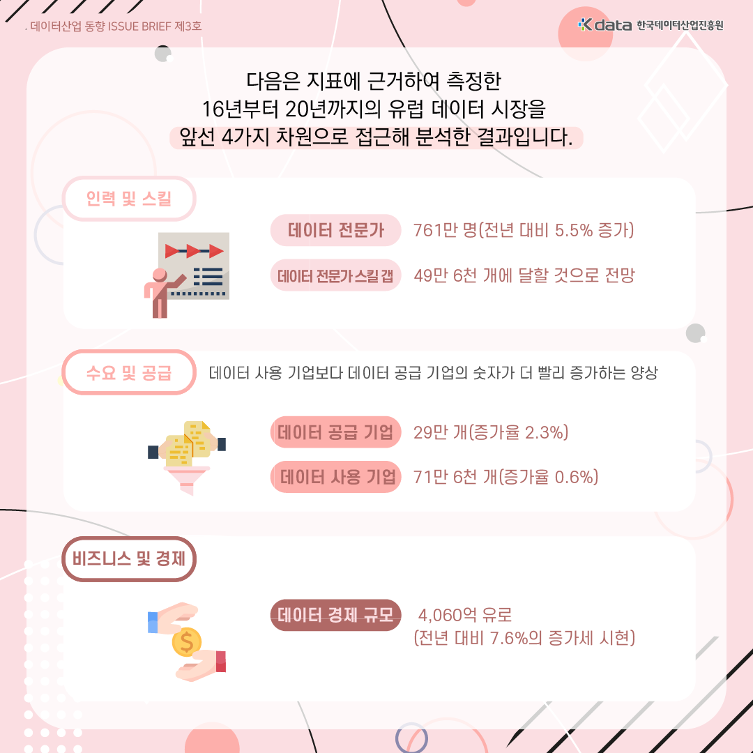 우리나라도 데이터 시장을 면밀히 조사해서 성장을 위한 제반 환경을 조성할 필요성이 느껴지는 이슈 브리프였습니다.