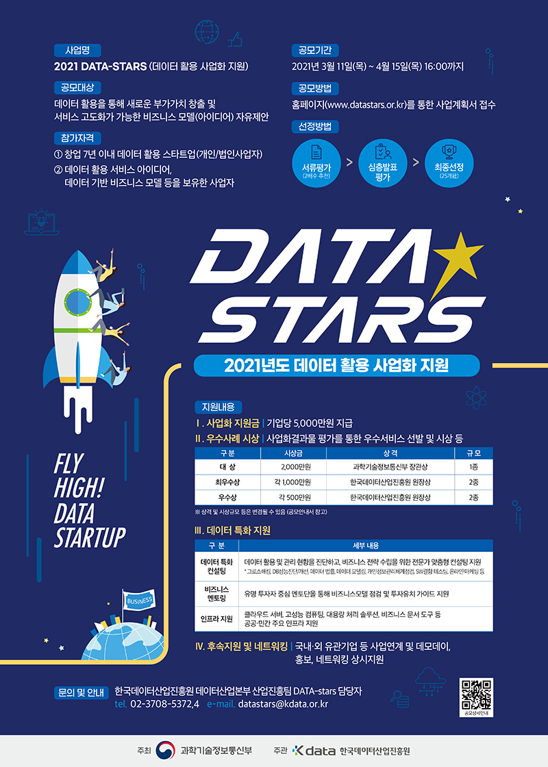 ㅇ 공 모 명: 2021 DATA-Stars(데이터 활용 사업화 지원) 사업 공모