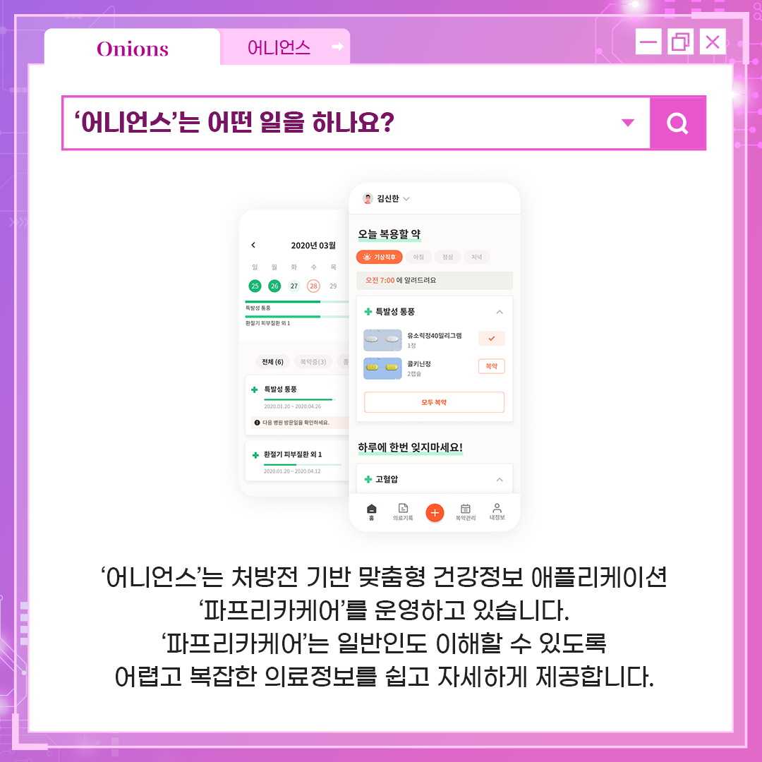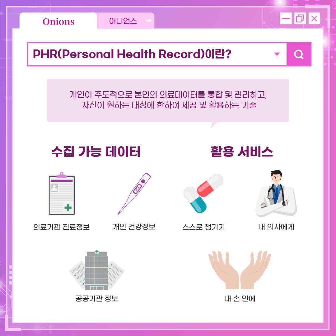 '어니언스'는 PHR 즉, 개인의료기록 데이터를 기반으로