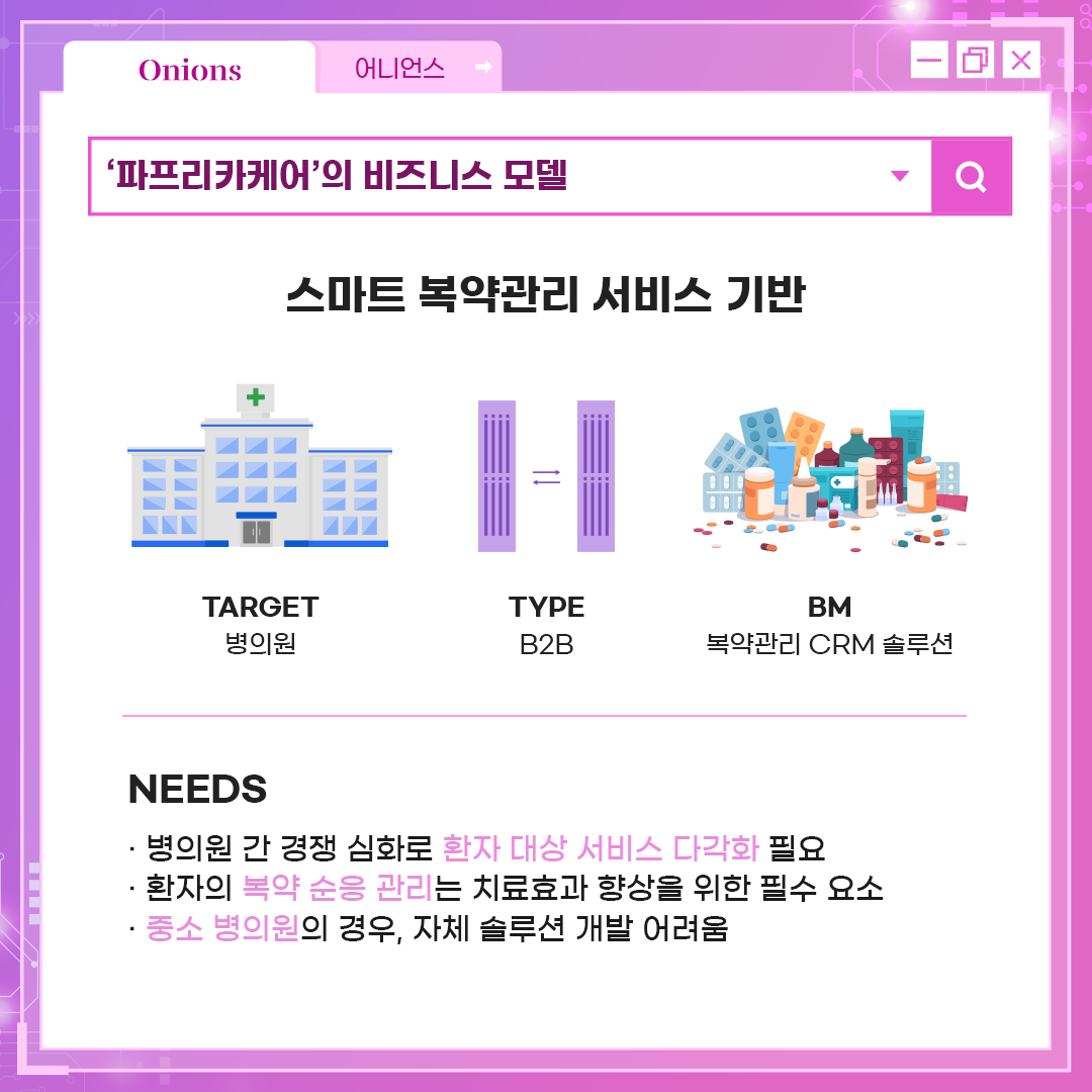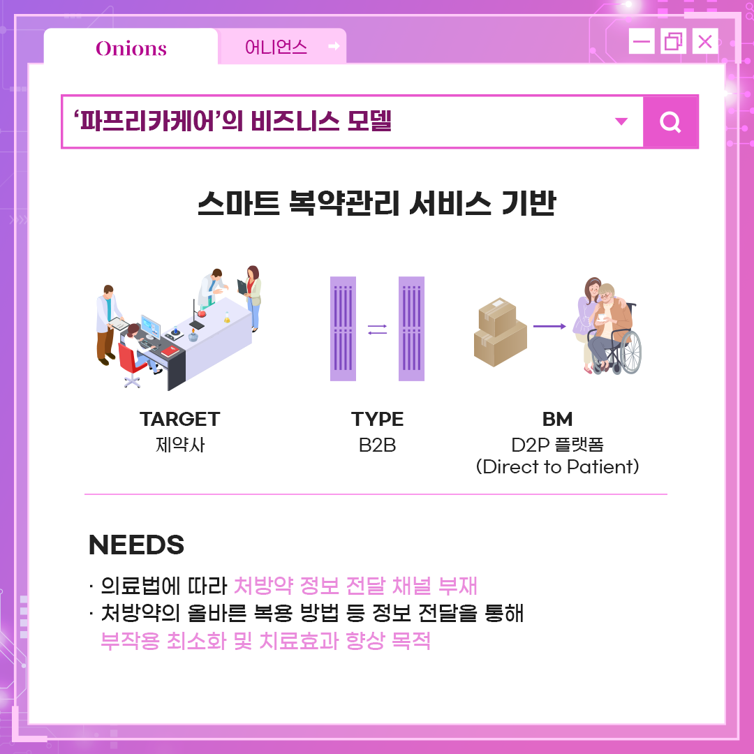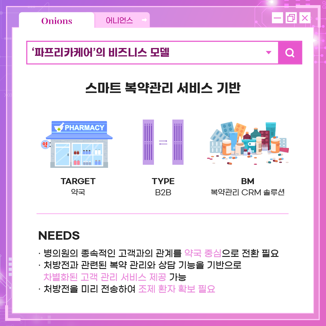 약의 정보가 바로 복용자에게 전달되는 비즈니스 모델을 구축했습니다.