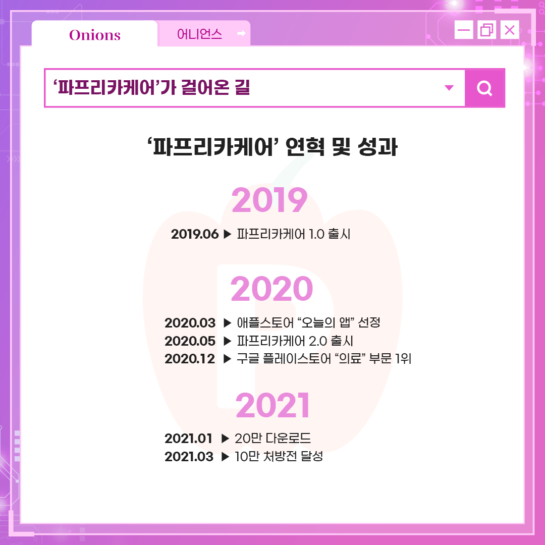 '파프리카케어' 출시 2년 사이에 20만 다운로드를 달성하며 빠르게 성장한 '어니언스'!