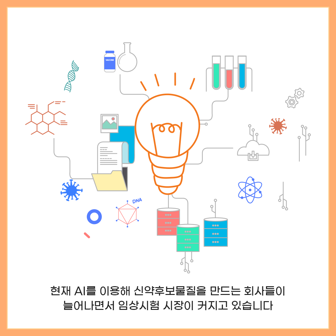 현재 커져가는 임상시험 시장에 따라 많은 회사들이 인공지능(AI)를 통해 신약후보물질을 만들고 있습니다.