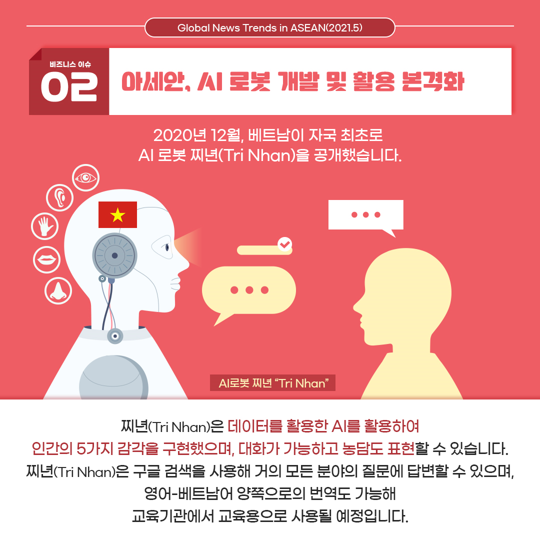 두 번째 이슈는 '아세안, AI 로봇 개발 및 활용 본격화' 입니다.