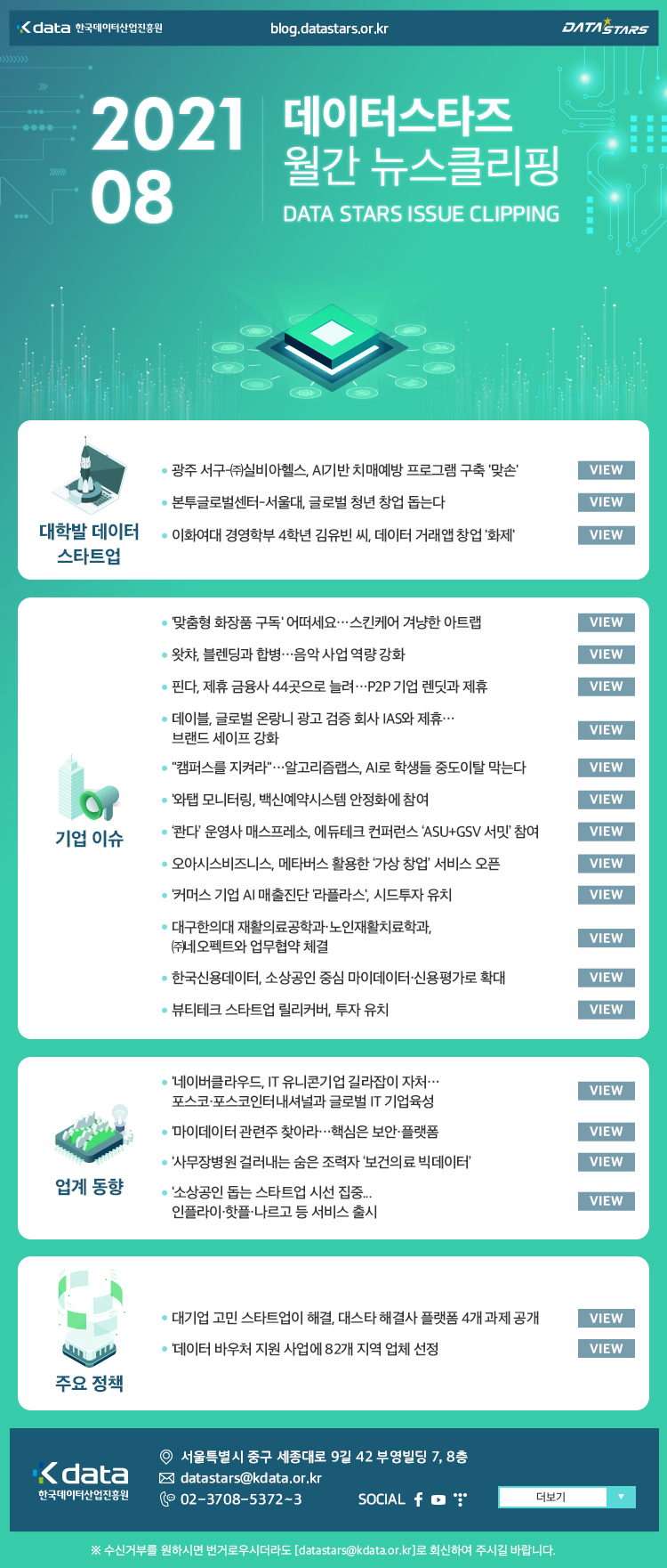 | 8월 3주차 DATA-STARS 이슈클리핑 (0) | 2021.08.20 |