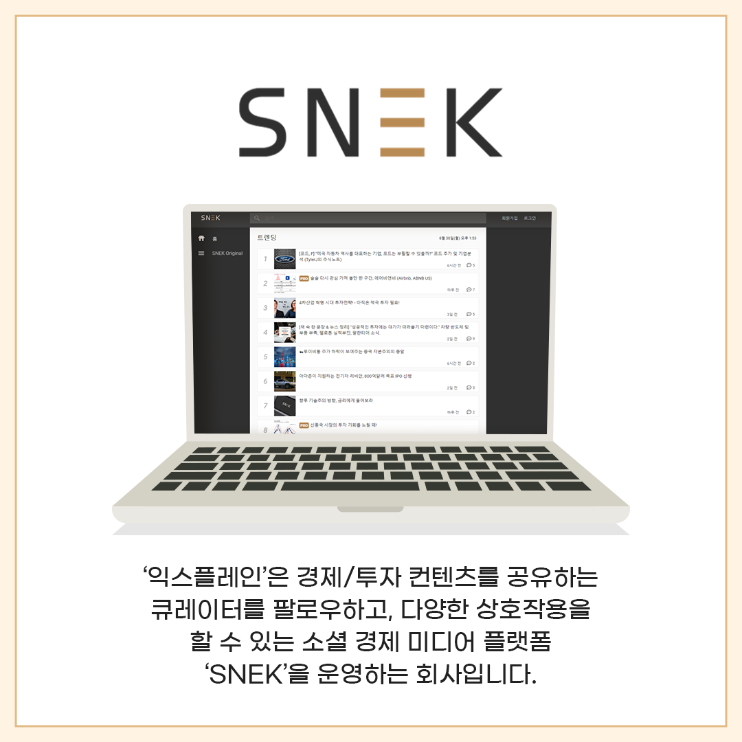소셜 경제 미디어 플랫폼 'SNEK'을 운영하는 회사입니다.