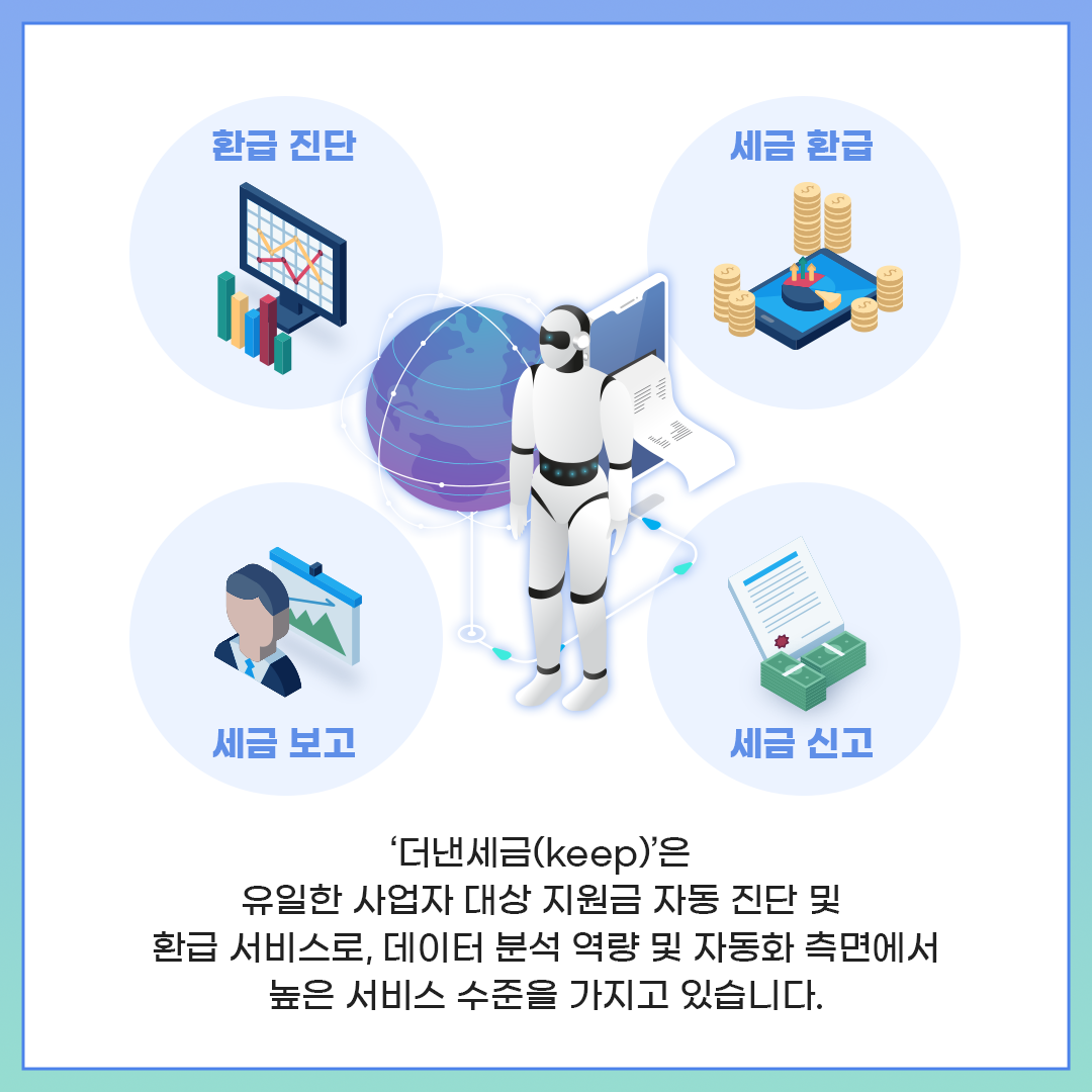 '더낸세금(Keep)'은 유일한 사업자 대상 지원금 자동 진단 및 환급 서비스로,
