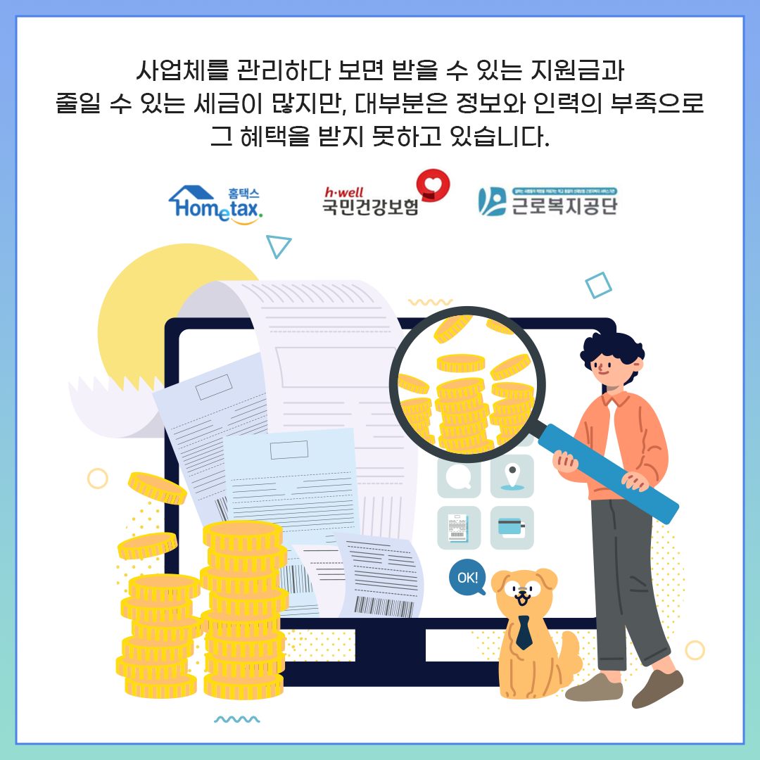 사업체를 관리하다 보면 받을 수 있는 지원금과 줄일 수 있는 세금이 많지만,