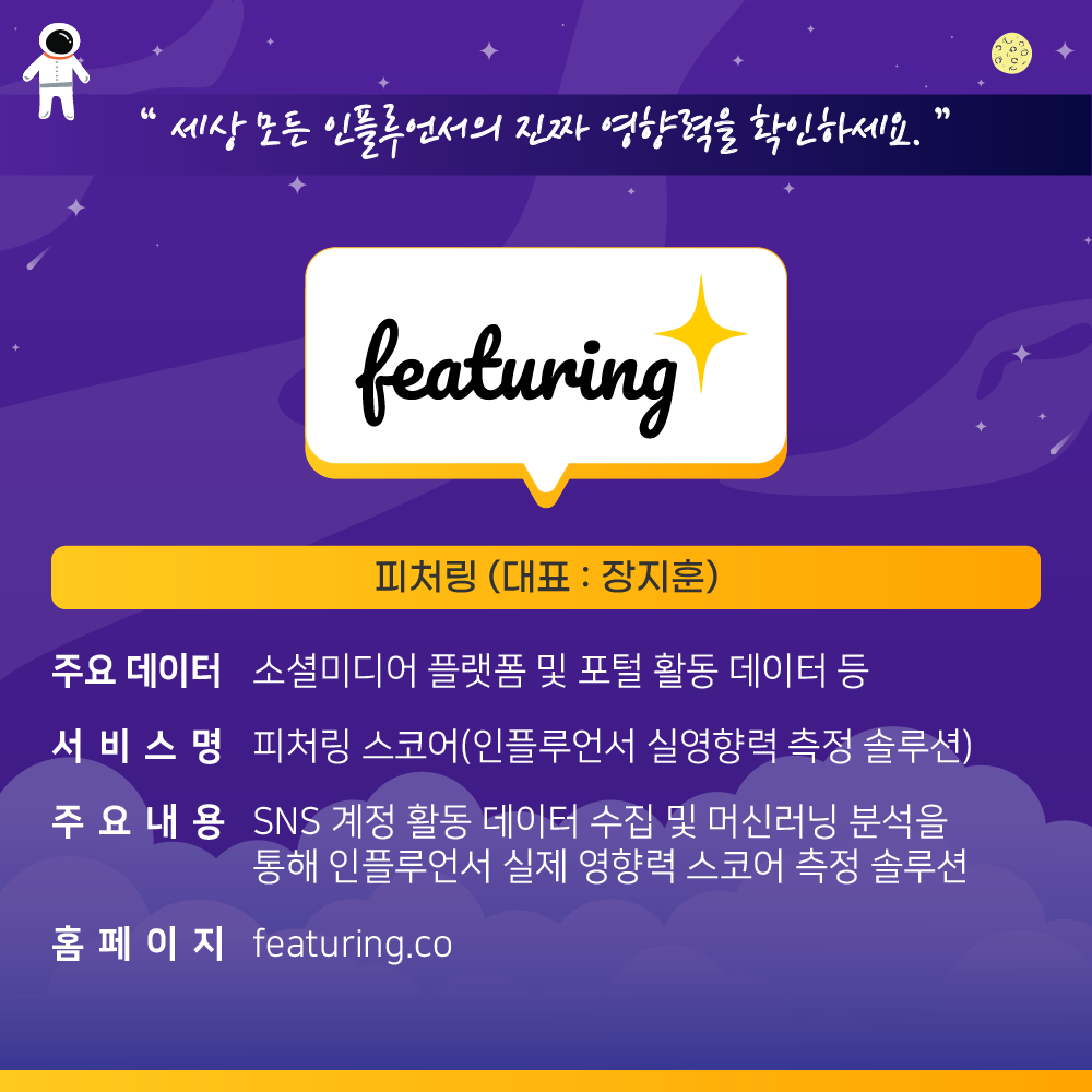SNS 인플루언서의 실제 영향력 스코어 측정 솔루션을 제공하는 기업입니다~!