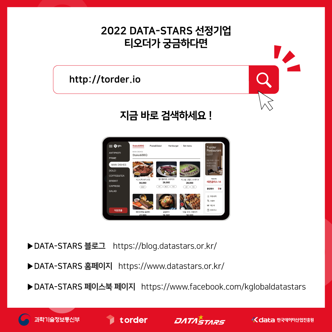 오프라인 매장 디지털화의 시작, 태블릿 데이터 주문 플랫폼 티오더 : http://torder.io/