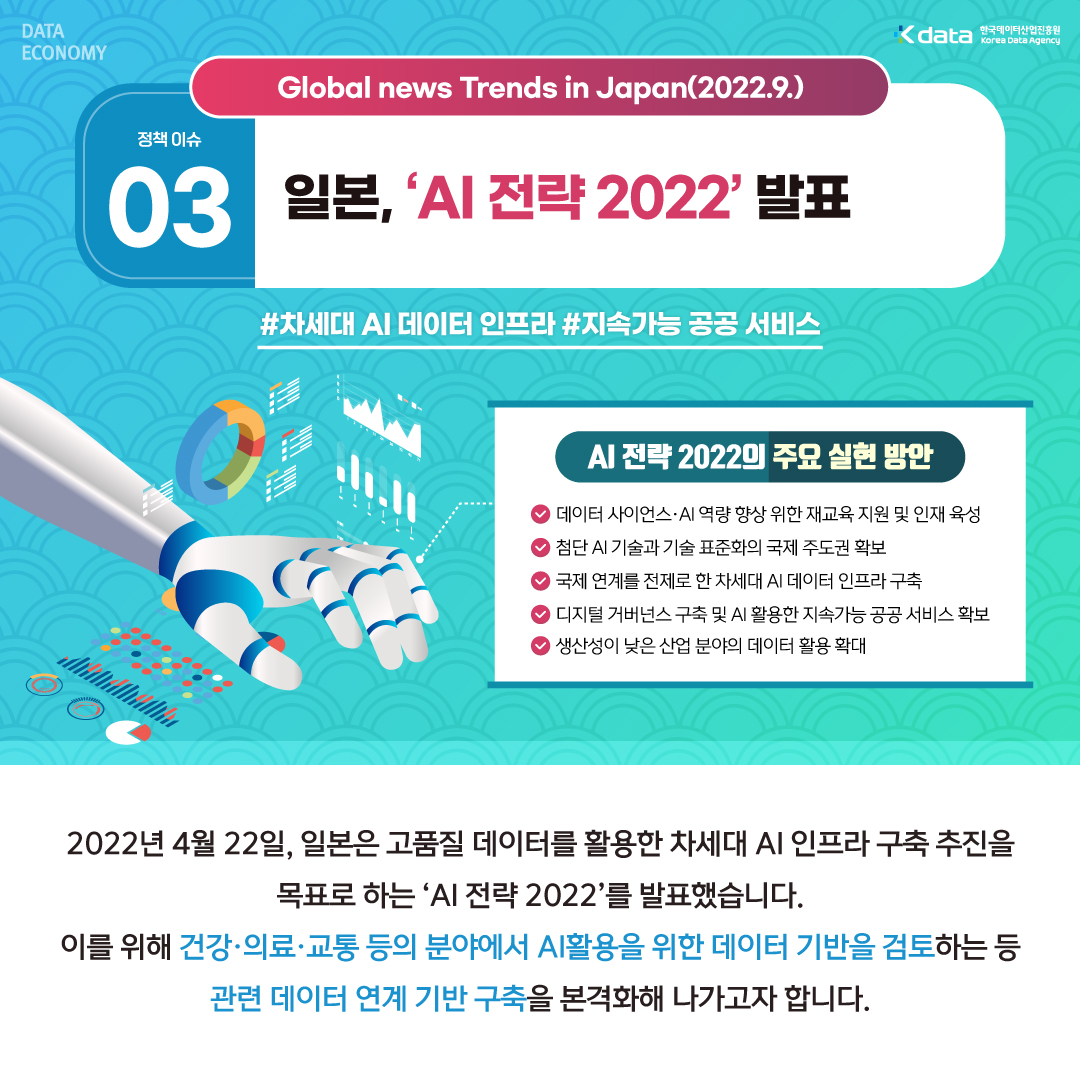 고품질 데이터를 활용한 차세대 AI 인프라 구축 추진을 목표로 하는 'AI 전략 2022'를 발표했습니다.
