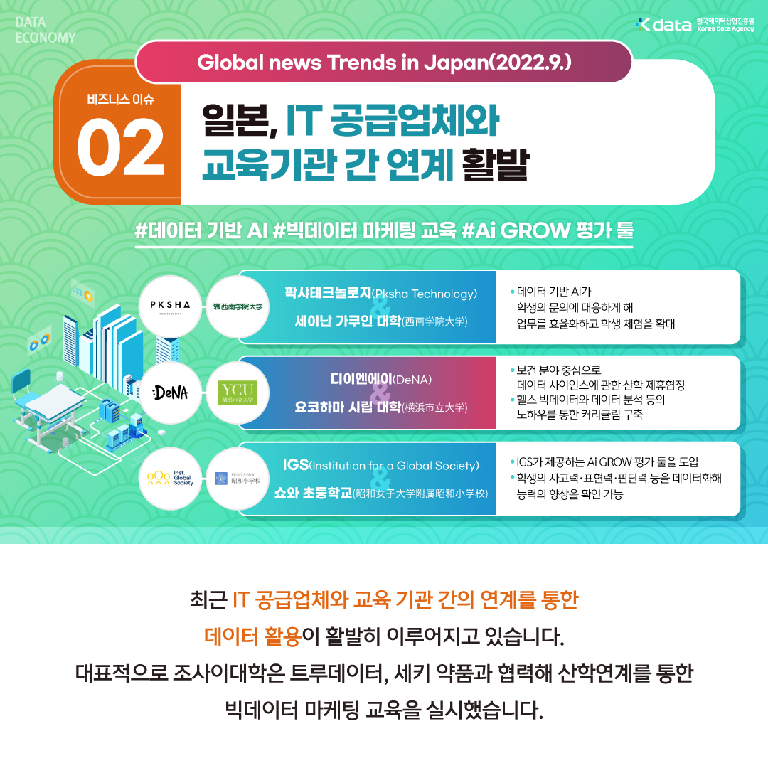 일본 내에서는 최근 IT 공급업체와 교육 기관 간 연계를 통한 데이터 활용이 활발하게 이루어지고 있습니다.