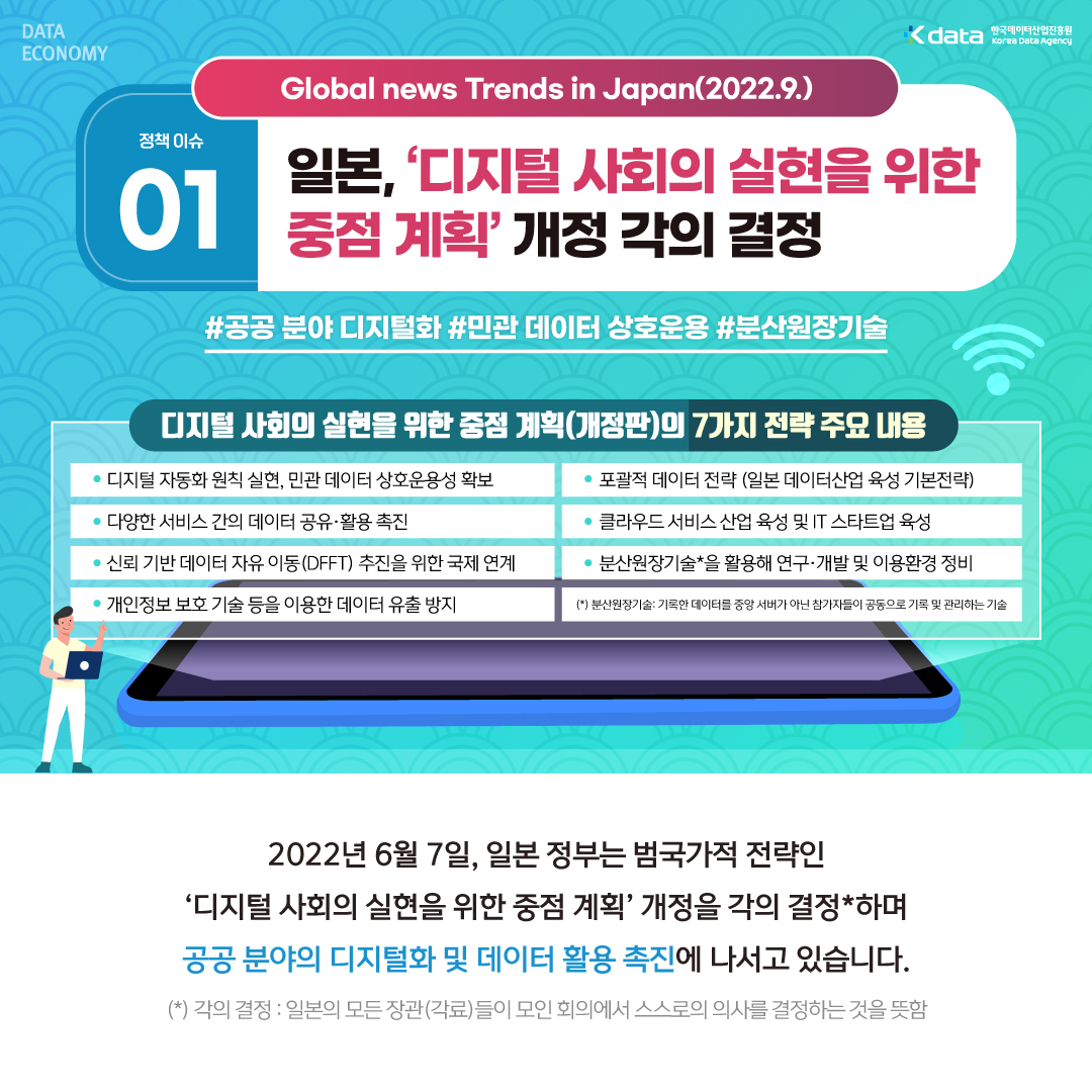 22년 6월, 일본 정부는 '디지털 사회의 실현을 위한 중점 계획' 개정을 각의 결정했습니다.