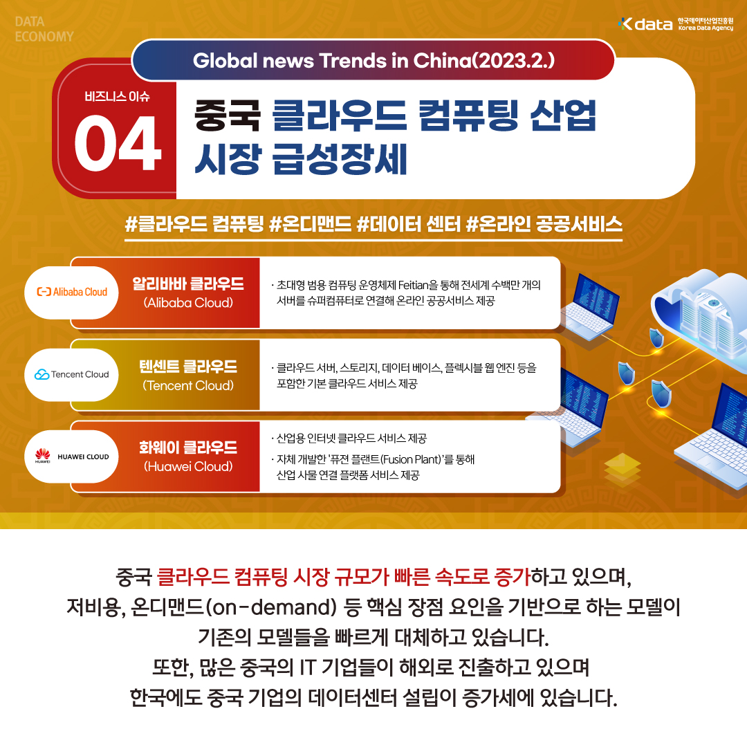 네 번째 이슈는 '중국 클라우드 컴퓨팅 산업 시장 급성장세'입니다.